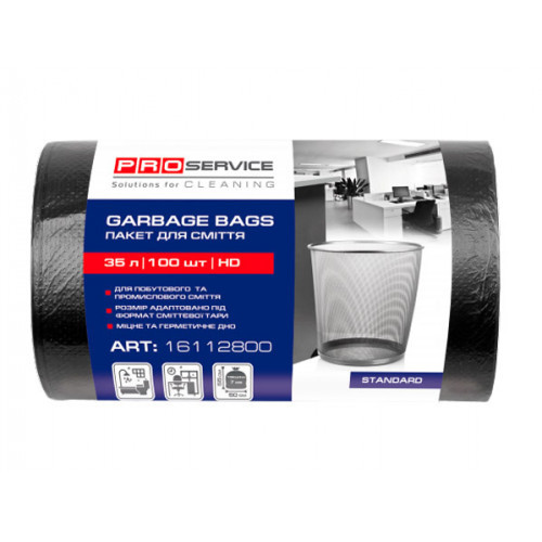 Пакети для побутового та промислового сміття 35L PROservice Standard HD чорного кольору 100 штук у рулоні.